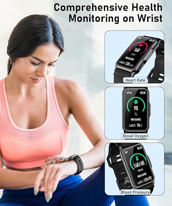 Stay on top of your health and fitness with this all-in-one smartwatch designed for both men and women. Equipped with 24/7 heart rate, blood oxygen, and blood pressure monitoring, it provides accurate real-time data so you can keep track of your wellness anytime, anywhere.